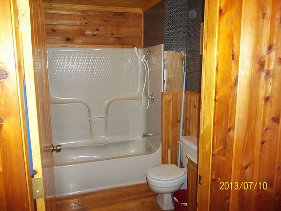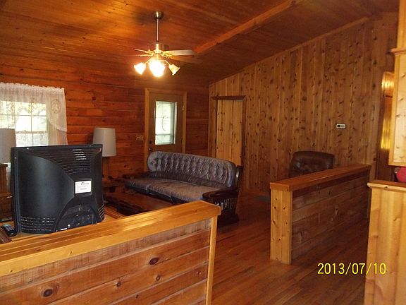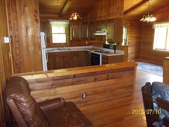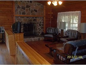 Upstairs-wood walls and wood ceilings, solid wood doors, rock foundation, 4th Bedroom or office downstairs. Exterior wood has been treated.
