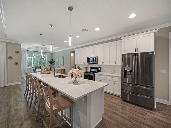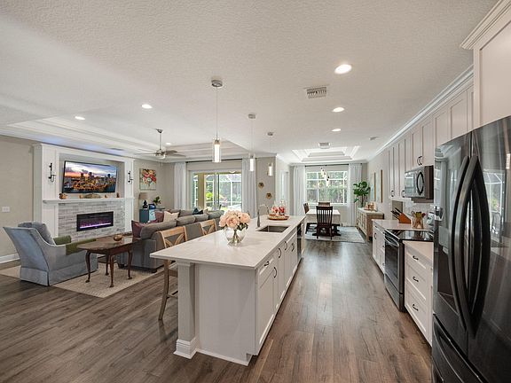 Welcome to this stunning, meticulously maintained CBS home, surpassing new construction, built in 2020. Boasting 3 bedrooms, 2.5 bathrooms, a den, 2-car garage, and room for all the toys. This residence offers an array of luxurious features from the moment you step through its grand covered entrance.The heart of this home lies in its exquisite kitchen, showcasing custom-built shaker cabinets, quartz countertops, sleek black stainless steel appliances, a center island, and a pantry. The expansive great room is accentuated by a tray ceiling, a contemporary electric fireplace, and sliding glass doors that lead to the recently constructed top-of-the-line screened-in pool (completed in 2023) and lanai. Enjoy relaxation and entertainment in the pool featuring a sun shelf and a hot tub The versatile den can easily serve as a fourth bedroom, while the private master suite is a sanctuary for homeowners. Revel in the tray ceiling, dual walk-in closets, French doors opening to the lanai, and serene backyard views. Pamper yourself in the spa-like master bathroom with dual vanities, a separate tub, and a walk-in shower.