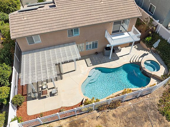 Beautiful home perched at the very top of Horsethief Canyon Ranch. With no neighbors behind and views for miles, this 5 bedroom and 2.75 bathroom two-story home is a rare opportunity for your family. Boasting one of the largest floorplans, the cathedral ceilings in the living room welcome you with lots of inviting light. The kitchen features Corian counters, a central island and plenty of cabinets for storage. The refrigerator is provided for the tenant's use. There are two downstairs bedrooms that are serviced by a .75 bathroom with a walk-in shower. Downstairs laundry room includes front-loading washer and dryer for tenant's use. Upstairs there is a large master bedroom with a vaulted ceiling and a walk-out balcony and slider door. There is a walk-in closet and a large master bathroom with his/her sinks, walk-in shower, and soaker tub. There are two nicely-sized guest bedrooms and a full guest bath with dual-sink vanity. All windows are encased with plantation shutters and all rooms have ceiling fans with remotes. Laminate flooring can be found throughout the home. The nicely landscaped front yard has a private porch that's perfect for that morning cup of coffee or relaxing as friendly neighbors pass by. The low-maintenance backyard has a covered patio and a beautiful pool and spa for family and friends to enjoy. An impressive 36-panel, dual inverter solar system keeps the home powered and the high-efficiency 22-SEER air conditioner sips power as your indoors is cool in the summer and toasty in the winter. The single-car garage space will be used to store some of the owner's personal belongings. Owner will pay the HOA dues, gardener, and pool service and tenants will have full access to tennis courts, club house, gym, (2) olympic-sized pools, and several parks. Horsethief Canyon Ranch is a great family neighborhood with a K-8 school, soccer, and baseball fields right in the community. Initial lease will be for 1-year. It is likely, but not guaranteed that a 2nd year option will be extended. After two years, the owner MAY take possession of the property.