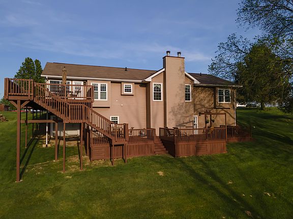 Large and very well-maintained, custom built ranch home (one owner). Sits on approx. 2 acres with scenic views. Full-finished basement, 4 large decks, 2 garages and plenty of room for indoor/outdoor relaxing and entertaining!