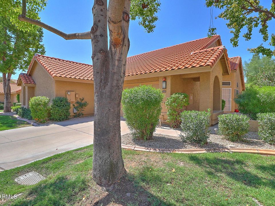 Welcome to this charming corner lot townhome in the highly desirable Scottsdale Hills community! This 2-bedroom, 2-bathroom home offers 1,012 sq ft of thoughtfully designed living space with a split-bedroom layout for added privacy. The open floor plan is complemented by high ceilings, creating a bright and spacious feel throughout. The primary suite features dual sinks and ample storage, while the second bedroom is perfect for guests or a home office. Enjoy the convenience of low-maintenance living in a prime Scottsdale location, close to shopping, dining, and entertainment.