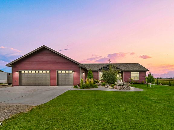 Step outside to the spacious back deck, hot tub, and a pavilion, overlooking your fenced in oasis, and striking, hand laid stone fire pit. From summer dinners and gatherings, to relaxing winter nights in the hot tub, this stunning yard is equipped to suit all of your needs! Front and back yard sprinkler system will ensure that your lawn is lush green every season (15 zones total, with water drip lines ran to each individual plant and tree), while designated trailer/boat/shop space will accomodate all of your toys and will allow for future expansion if desired. Enjoy the sparkling lights in the distance, unobstructed Sunrises and Sunsets, as well as your own landscaping highlights, with carefully laid out solar lights, illunminating the exterior.
