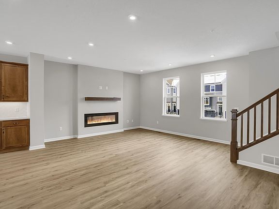 COMPLETED NEW CONSTRUCTION - Welcome to the stunning Camden townhome, which boasts a modern, open-concept layout with a main-level laundry room for convenience. Spacious, front-load garage provides easy entry into the home. Lower level comes finished to include a rec room! Main level features beautiful luxury vinyl plank flooring throughout the main level and a sleek, modern fireplace in the family room. Kitchen is open to dining/family room and boasts a convenient pantry area, large center island, gorgeous quartz countertops, and stunning light-colored cabinetry. An outdoor deck sits just off the kitchen/dining area. Keep loved ones close with all three bedrooms located on upper level. Owner's suite features an attached bath and huge walk-in closet. This stunning community is located behind Elm Creek Park Reserve. Don't miss this one! Schedule an appointment to view this home and the model home today!
