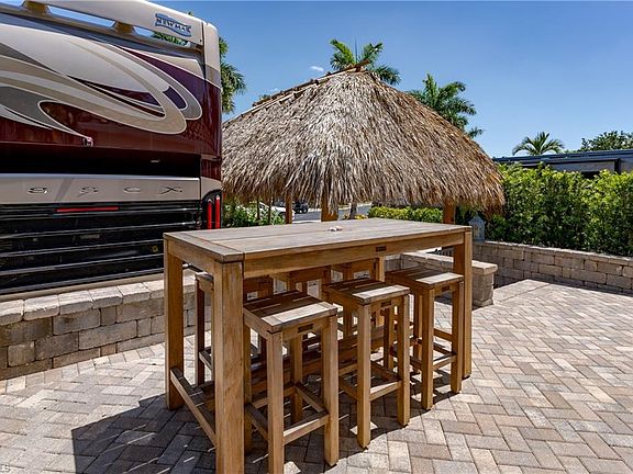 Lot 32 - Welcome to the beautiful gated community of Naples Motorcoach Resort! You drive through the gates, go around the lake and pull up to your beautifully paved and landscaped site. After you set up your coach you immediately go outside and go under your tiki and relax. You feel and hear the beautiful breezes as you look at your most amazing landscaping. Now, it is time for dinner.. you head up the stairs and open the gate on your raised enclosed paved patio. Your dogs great you as this is their favorite area to hang out, and they are totally safe in this area. You enter your casita through the sliding glass doors and turn to your stove and oven and get the pots ready and you preheat the oven. Your beautiful refrigerator and freezer are fully stocked, you wash your vegetables in the most gorgeous porcelain farmers sink. Now all things are cooking and baking and you head out to put additional food on your barbeque which has the perfect spot on your raised deck next your banana trees! Now that everything is done, you set the table outside on the raised deck and enjoy your meal. After dinner is the perfect time for a bike ride around the resort. Your bikes are stored out of site behind your casita. You tour the resort and come back and decide to shower in your beautiful casita bathroom. Now time to relax in your air conditioned casita and watch a movie. As you sit there you think about this wonderful paradise and how you get to enjoy it in so many different ways on this amazing site. From Casita to raised paved enclosed patio to the new tiki... you have arrived, now continue to enjoy..... Naples Motorcoach Resort is a Class A only resort and boasts a beautiful infinity pool, hot spa, exercise room, men and ladies' saunas and a kitchen that owners can use. A clubhouse for events whether sponsored by the resort or you can reserve for your own gathering. Two satellite pools each with a hot spa their own rest rooms and a laundry room. We can't forget your furry best friend; the resort also has a dog park!