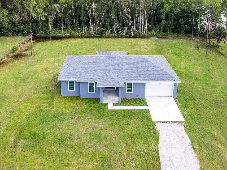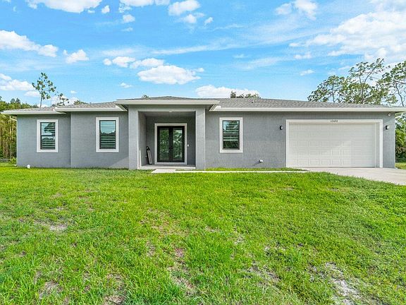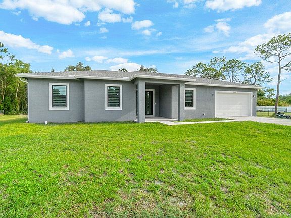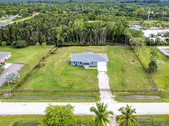 This newly built, fully fenced home is located in the heart of the acreage and is turn key ready! It boasts 4 bedrooms, 2.5 bathrooms, and a 2-car garage with all impact windows. Step inside the double doors, to find an open layout fully designed and upgraded by with a modern farmhouse vibe troughout. Upgraded to designer finishes, it features wood look tile throughout the main living areas, bedrooms, and all bathrooms. In the kitchen, you will find beautiful white shaker cabinetry, quartz counter tops, and a mosaic herringbone backsplash with gold cabinet hardware. The master bedroom offers plenty of space and a walk in closet with white cabinetry, black hardware, quartz countertops, a frameless shower with marble look tile, and pebble flooring. The remaining 3 bedrooms have a shared full bathroom with similar finishes as the master bedroom.
