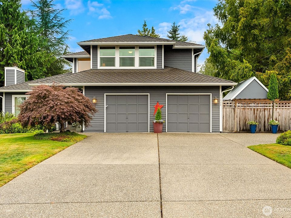 Gorgeous setting in the backyard! This 2300 square foot, three-bedroom home rests on a large level lot and features a full size pickleball court. The main floor offers a smart and thoughtful floor plan with formal living and dining rooms to the left of the main entrance and an inviting "great room" to the right. The spacious kitchen with large island and pantry opens to the family room that has a vaulted ceiling, a gas fireplace insert, and built-in cabinetry. The upper level is home to three bedrooms (including a fantastic primary with remodeled bathroom) and a second full bathroom. Many windows and skylights invite an abundance of natural light. The presidential grade roof was installed in 2013. Mukilteo schools.