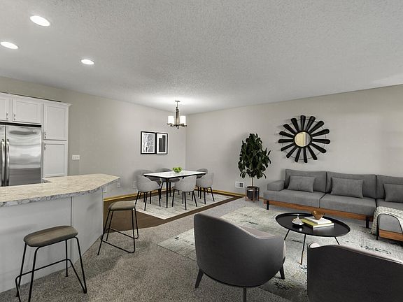 Welcome to this beautifully maintained 3-bedroom, 3-bathroom end-unit townhome located in the sought-after Harmony Village community of Rosemount. This bright and inviting home features brand new carpet throughout, an open and functional layout, and plenty of natural light. The modern, refreshed kitchen offers a breakfast bar and stainless steel appliances. There is also a separate dining area for entertaining. On the second level, you’ll find all three bedrooms, including a large primary suite with a private bathroom and walk-in closet, convenient upstairs laundry, another full bathroom, and a spacious loft area with flexibility for a second living room, home office, or playroom. Enjoy the many amenities of the community including a fitness center, party room, outdoor pool, disc golf course, and park with pavilion. As an end unit, this home allows extra privacy and includes its own green space. Guest parking is located right next to the unit. Don’t miss your chance to own this move in ready townhouse in one of the best neighborhoods!!!