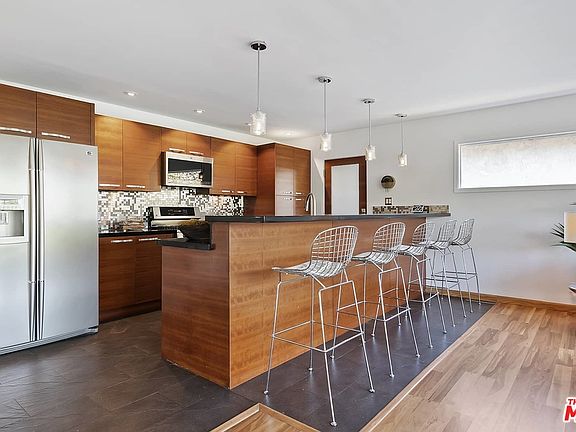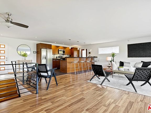 South of the Boulevard, the new-age Contour House elevates one's daily lifestyle amidst the lush hills of Sherman Oaks. Encapsulated within a 2-story, 1,691-sq-ft eclectic mid-century home are 2 bedrooms, 2.5 baths, and an open floor plan beautified with hardwood floors and eclectic-yet-tasteful finishes. Wall-to-wall windows and patio doors invite comfort and light while seamlessly uniting the kitchen, living room, dining area, and main-level patio. After admiring the valley views from the living area, descend via stairway to the ground level comprising a massive covered deck and Iconic garden area perfect for for dinner parties, organic gardening and family lounging. The quintessential dwelling to remove yourself from the hustle and bustle of city life. Simplistic interior design. Minimalist interiors with massive outdoor and backyard opportunities. Completely gated, private, 2-car garage.