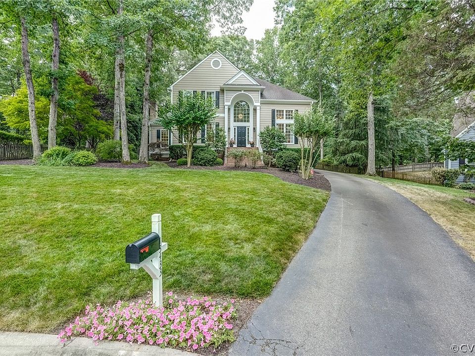 Situated on over 1/2 acre private cul-de-sac lot in Short Pump’s desirable Wellesley neighborhood! Meticulously cared for and updated, this home features 4 Bedrooms, 2.5 Baths and 2,783 sq ft of living. Excellent curb appeal with long paved driveway and beautifully landscaped yard. Refinished hardwood floors on 1st level. 2-story foyer with custom light fixture flanked by 2 living spaces that have double crown molding and decorative paneling. Large windows flood the home with natural light, highlighting the beautiful design elements. Updated kitchen with granite countertops, bar top seating, SS appliances (microwave & dishwasher new 2023). Large dining room with gas fireplace flows seamlessly to the kitchen, making family meals a breeze. The sunroom is a perfect gathering space & features built-in storage and desk, closet, and French doors that open to a beautifully designed outdoor living area. Guest bath & mudroom w/ ample storage & utility sink complete the main level. The upstairs Primary Suite features cathedral ceiling and amazing views of the wooded backyard, along with a spa-like bath featuring soaking tub, tiled shower, dual granite top vanities and 2 closets with organizational shelving. 3 additional bedrooms, hall bath, and convenient laundry chute. Expansive backyard with a large wrap-around deck surrounded by lush professional landscaping. The deck encircles part of the home w/ multiple seating areas, making it perfect for entertaining or enjoying quiet moments. Addt'l features include an encapsulated crawl space, 2-car garage with built-in storage, pull down attic, additional attic storage in 3rd bedroom, irrigation system, newer roof w/ transferrable warranty. Wellesley residents enjoy a strong sense of community with amenities that include a pool and swim team, playgrounds, clubhouse, fitness center, lake & more! Great schools & just 5 minutes to Short Pump shops & restaurants! Don’t miss this rare opportunity to call this your Home Sweet Home– schedule your tour today!