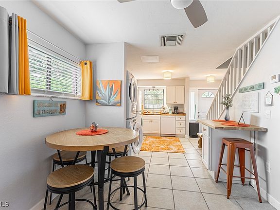 Looking for a prime investment opportunity, this cozy townhouse is a successful fully furnished vacation rental, or a cozy second home in Southwest Florida? This charming 2-bedroom coastal townhome offers the perfect solution, ideally located just minutes from the stunning beaches of Sanibel, Ft. Myers Beach, and Bunche Beach. Recently renovated, newer appliances, A/C & hot water heater. Relax in your screened lanai area overlooking the pool or your second deck area off the kitchen.