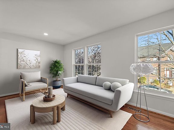 This is the one you have been waiting for! This beautiful, brick-front, END-UNIT townhome in Fountain Hills is significantly bigger than most in the community and is move-in ready, freshly painted top to bottom and BRAND NEW CARPET. You'll love the warm glow of the hardwood floors and all the light that streams in from the large windows front and back. The kitchen features BRAND NEW APPLIANCES & FLOORING, white cabinets, granite countertops, and an island, plus a large eat-in area. What you will really love is the huge family room behind the kitchen, perfect for more casual entertaining and with a lovely view of the trees behind. The main floor also features recessed lighting and a powder room for guests. Retreat upstairs to your expansive owner's suite with the same tree views, walk-in closet and a GORGEOUS private en-suite bath. The bath has been completely redone with quartz countertops, fog free mirrors, a separate soaking tub and shower with rainfall showerhead. You will find two more generous bedrooms and second full bath, which has also been completely renovated. The lower level is full of light and possibility as it is the entry level, giving you a WALK-OUT basement. You will find another family room/den as well as the fourth bedroom, another half-bath and laundry. New water heater installed in 2023. All of this in a quiet, tree-lined community, rich with amenities. Fountain Hills is built in a setting that encourages outdoor recreation and a sense of community. With the community pool and the Fountain Hills Local Park with playground, tennis courts, basketball courts, walking trails - you'll never be without something to do. All of this and easy access to dining and shopping, not to mention commuter routes. Get ready to see it soon because it will not last.
