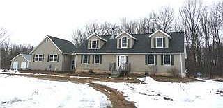 Priced to sell! Well maintained home sits on 5.4 partially wooded acres. Open floor plan with dual fireplace open to great room and kitchen creates a warm invitation to stay awhile spacious kitchen and dining areas offer gleaming hardwood floors, ample cabinets & counters. Master bedroom retreat complete with sitting area, walk-in-closets & spa bath. Big basement with 10 ft ceiling, plumbed for 3rd bath. 16 x 32 deck with great view of mother natures finest. 30 x 60 pole barn w/ concrete floor. Easy access to expressways.