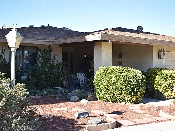 WONDERFUL WELL-CARED FOR HOME ON LARGE LOT IN APPLE VALLEY! SPLIT FLOORPLAN WITH A UNIQUE LAYOUT THAT PROVIDES FOR POSSIBLE SEPARATE LIVING QUARTERS. MATURE TREES AND CIRCULAR DRIVEWAY. This home has been well cared for just needs updating if buyer is so inclined to do so. Many features including but not limited to: mature trees for a park-like atmosphere, large rooms, kitchen open to living room, large fireplace with wood burning insert, nice front and rear patios, skylight and light tube that allow for additional natural lighting from above, oak windowsills, tons of storage and lots of cabinets, newer upgraded shower in primary bathroom, double sinks, inground spa off master slider has brick surround, side yard with carport, yard is fenced and cross fenced, granite counters in kitchen with a breakfast bar area and so much more. **Seller in process of relocating. Pictures will be updated when that is complete **