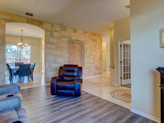Drive up to this charming home that you will love the moment you arrive, from curb appeal to the interior design. The Spacious home boasts 3 Bedrooms, 2 Baths plus a Formal living, Formal Dining room, Office/Den (possible 4th Bedroom), Family room plus a huge eat in Kitchen. Plentiful, classic dark wood cabinets with upgraded stainless steel appliances. Upgraded wood laminate flooring and Travertine polished flooring throughout the main living areas add warmth and class. Master suite has dual sinks, garden tub and separate 2 person shower. Step out to your screened lanai & Heated In-ground pool with inground hot tub/spa, waterfalls and fountain,. Great home for fun filled days or relaxing nights. The yard is fenced with a small goldfish pond and a nice Shed for storage. Remediated sinkhole