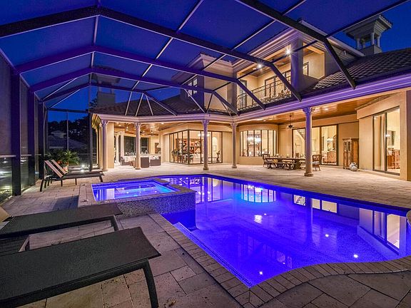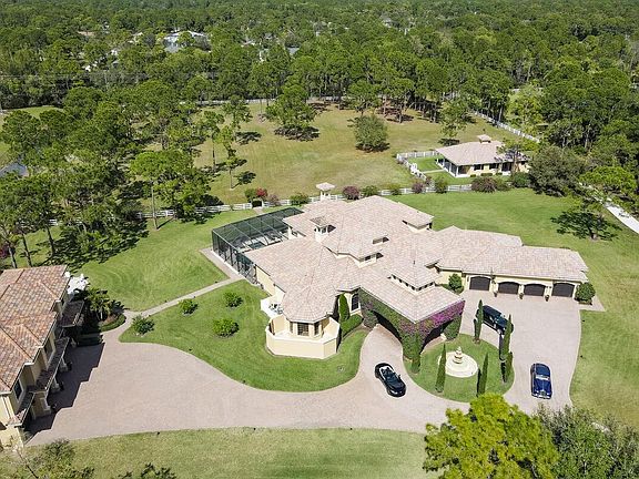 Exquisite Private 7 Acre Custom Built Estate Home, 5 Bed/6 Bath & 1/2 Bath in the Main House, 2 Bed Ensuite Guest House with Living Room/Full Kitchen, 4 Stall Stable with Fitness Center & 1/2 Bath, 8 Garage Bays. The Main House Includes; Separate Office, Family, Living & Dining Rooms. Chefs Kitchen has; Granite Counters, Tumbled Marble Backsplash, Top Notch Appliances & Hooded Stove. Panoramic Impact Windows & Doors Provide Patio, Pool & Endless Backyard Views. Primary Bedroom has a Spa-Like Bathroom Retreat, Ensuite 2nd/3rd/4th&5th Bedrooms. Outstanding Features Include; Home Theater, Fire Pit, 3 Bars, Marble Floors, Crown Molding, Coffered Ceilings, 2 Fireplaces, Water Filtration Systems. Fabulous Screened-In Outdoor Entertainment Space with Pool/Spa, Living Room, Grill, Bar & Dining Areas 24 Hour Notice, By Appointment Only. **When Submitting Contracts Please Provide the Following; "AS IS" FAR/BAR Contract For Sale. Pre-qualification Letter & Proof of Funds with all Offers.**