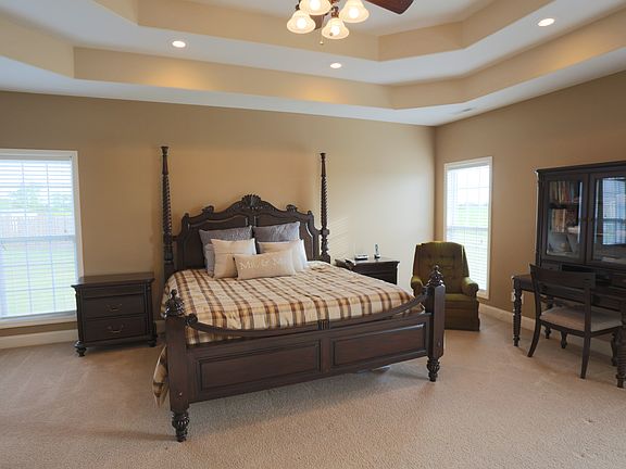 Full brick home on private cul-de-sac lot. Beautiful view from backyard. Home features hardwood flooring, vaulted 14 foot ceilings in living/dining room, and stainless steel appliances. Huge master bedroom (18'x20') with double trey ceiling. Master bath features tall 36" counters, private water closet, and jetted tub. Gas range with convection oven, High-CFM range hood, & tile backsplash in kitchen. High efficiency wood burning insert and full masonry fireplace/chimney in family room. Raised brick patio with decorative concrete & natural gas hookup for grill. Storm shelter, Rinnai Continuous water heater, & utility sink in garage. Monitored security & fire alarm system. Central vacuum system. High-Efficiency (15 SEER) heatpump. Exterior generator hookup with manual transfer switch. Ethernet & cable connections in each room. Structured wiring closet.
