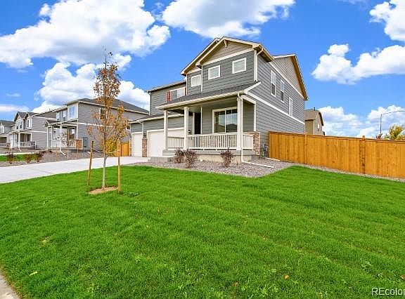 As you enter this delightful 2 story home with full un-finished basement and 3 car garage you are greeted with lots of natural sunlight beaming in through 8 foot front door with glass enhancement. With 5 bedrooms and 3 full baths. The modern white color pallet that is inviting for everyone. The seamless floors flow throughout the main floor of this home and amplifies the dramatic 9 foot ceilings throughout the main floor living space! As you walk down the foyer you enter the family room with a gorgeous tiled fireplace that overlooks the dining nook area and large kitchen. The kitchen boasts a stainless-steel gas stove, microwave and dishwasher. The island with granite counter tops is great for gatherings. The upper level starts with an oversized loft for everyone to enjoy. The home is fully fenced and has front yard landscaped. * Estimated Delivery Date: Dec/Jan. Photos are representative and not of actual property*