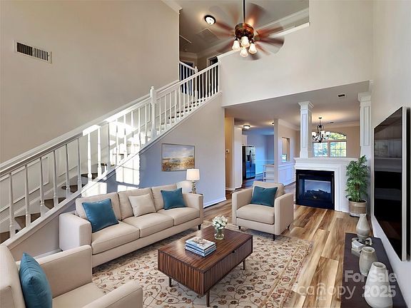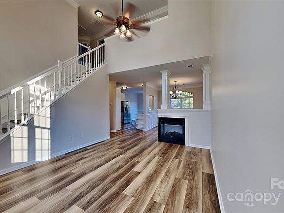NO HOA Dues! This Lovely four-bedroom, 2.5-bath home, built in 2000, offers an impressive two-story great room highlighted by a full wall of windows. It's everything you've been looking for! Easily escape to your main floor owner's suite, with a large sleeping area, huge walk-in closet, & private bath with dual sinks, garden tub, & separate shower. The chef will love the updated kitchen with Quartz countertops, SS Sink, and a Fauset. The stunning open floor plan is complimented by a 3 sided see-through fireplace to be enjoyed from every room. Grand staircase invites you to the second floor 3 large bedrooms and a bath. MANY updates to enjoy: New flooring throughout, impressive LVP & carpet, entire home professionally painted, HVAC new 2024. After a long day, you'll enjoy your private backyard. Just minutes to I-485, Charlotte, many popular restaurants and shops.