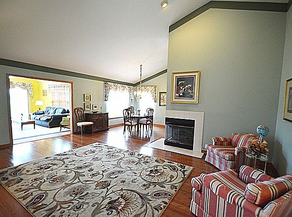 Golf Course Lot with beautiful views of the 8th fairway out your patio door off the Florida room! 2-bed, 2-bath one-owner ranch home with full finished basement in Carillon's 55-plus active adult community. Gorgeous hardwood floors installed in 2014 throughout most of the main level. Vaulted ceilings and skylights throughout. Bonus Florida room added in 2002. Watch the golfers tee off from your recently renovated brick paver patio. All of this and a corner gas fireplace too! Tons of storage space! HOME WARRANTY INCLUDED! Come and see this one today! It will not last!