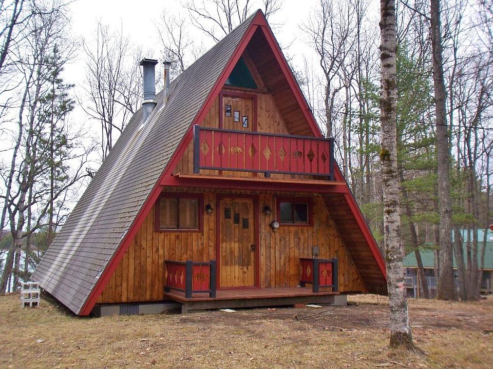 Enjoy this A-Frame style cabin with over 96' of frontage with outstanding elevated view of Little Bear Lake. Living room, kitchen/dining, bath and bedroom on main floor. 9x12 bedroom upstairs. Cute and cozy with 668 sq. ft., hardwood floors, appliances included. ''A'' perfect weekend retreat, situated on 2 nice lots!