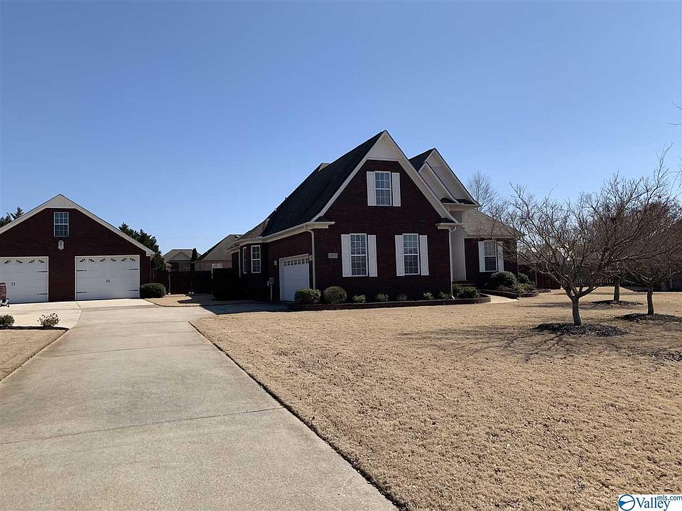 Beautiful brick home on cul-de-sac features nearly 2000 square feet plus detached man cave/dream workshop with over 1100 square feet also heated and cooled. Split floor plan with isolated master bedroom has double trey ceiling and glamour bath, his and her closets, garden tub and separate shower. Fourth bedroom upstairs could be used as bonus room if preferred. Two custom built gates lead into fenced back yard with deck and another fenced spot for your pets. The shop has so many features they are listed on an additional document. A few highlights are 9000 lb hydraulic car lift, custom built cabinets on all walls, 3 1/2 ton Trane HVAC, custom reflective paint on floors & lift for upstairs.