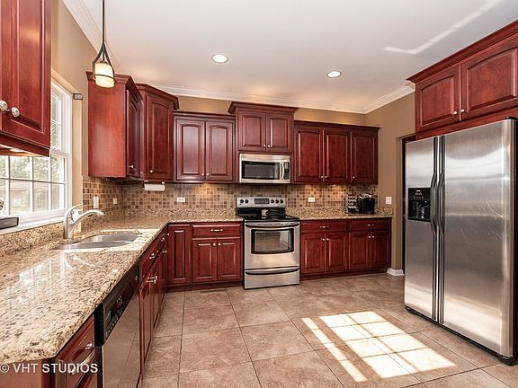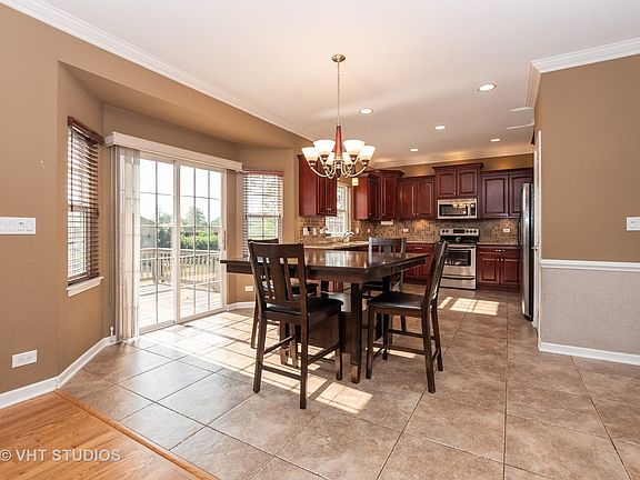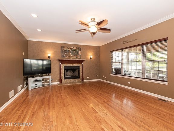Welcome to your dream home! This gorgeous single-family home boasts 3 bedrooms + loft and 2.1 bathrooms. As you walk in, you'll be greeted by beautiful hardwood floors and the family room being the heart of this home with a cozy fireplace and a comfortable space for everyone to enjoy. The crown molding gives the home an elegant touch while wood blinds provide natural light and an added layer of privacy. 42" Cherry cabinets in the kitchen provide ample storage along with stainless steel appliances, under/over lighting, and a butler's pantry. Upstairs find the spacious primary bedroom ensuite that features a large walk-in closet and spa-like bathroom featuring a jacuzzi tub, dual vanity, and separate shower. Also find secondary bedrooms and a loft, perfect for guests or children. The basement features 9.5' ceilings, plumbing for a bathroom, and a dual HVAC. Sitting on a vast lot of 16,449 sq ft that backs to open ground, this gives you and your furry friends plenty of space to run around and makes for a perfect location to host your summer barbecues, while the soft deck is the ideal spot to relax and watch the sunset. A new roof in 2022 ensures peace of mind for years to come. This home is conveniently located just a short walk from Bambrick Park and is adjacent to open green space, making it the perfect spot for outdoor enthusiasts. The shed and garage provide additional storage options, and the proximity to District 205 makes it an excellent choice for families.