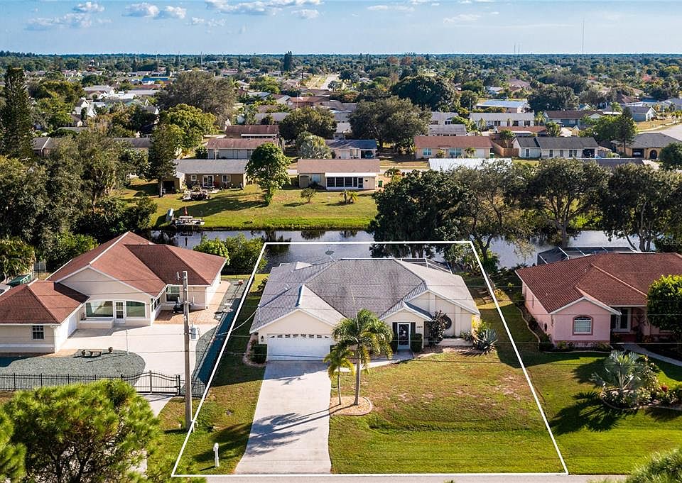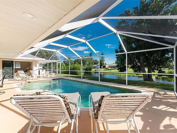 Florida living at its best, this waterfront pool home in the highly popular waterfront community of Gulf Cove has it all! The custom screened and covered entrance adds a distinctive flair, and also provides a gateway to your very own private retreat. As you enter, the canal views take center stage right past your sparkling heated pool. Vaulted ceilings add even more volume to this spacious home, always bright and cheery with natural light, and the spacious kitchen features granite countertops, a breakfast bar, and ample cabinet space, suited for a gourmet chef. Arise to beautiful water views in your master suite and then use your spacious master bathroom with a separate bathtub and shower to prepare for your day. The split floorplan provides privacy for guests, who will never want to leave! The great room and breakfast nook features plenty of space for entertaining, and you can even open your sliders to let the fun continue onto the lanai. Enjoy a cup of coffee at the Breakfast Bar or on the lanai as you plan your day. With this homes close proximity to beaches, golf courses, marinas, boat ramps, restaurants, live entertainment, shopping, the Charlotte County Fairgrounds, and the Spring Training Complex for the Tampa Rays, there is always something to do. You are also minutes from the Gulf Cove Waterfront Park where you can enjoy spectacular views of the Myakka River, launch your boat at the community private boat ramp with direct access to the Gulf, host an event under the pavilion, or simply have fun at the playground area if you join the optional HOA! The boat ramp requires a decal purchase. Do not miss out on the opportunity to own a waterfront home and start living the Florida lifestyle!