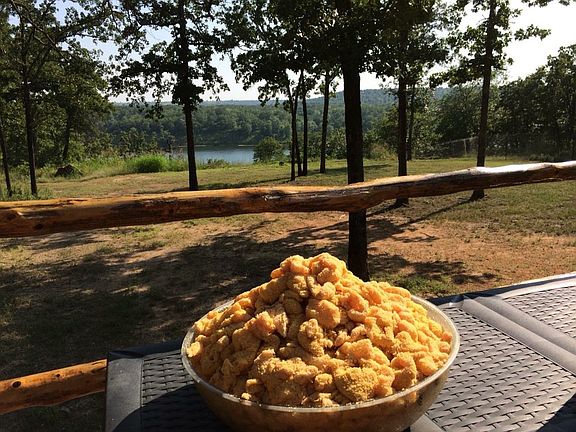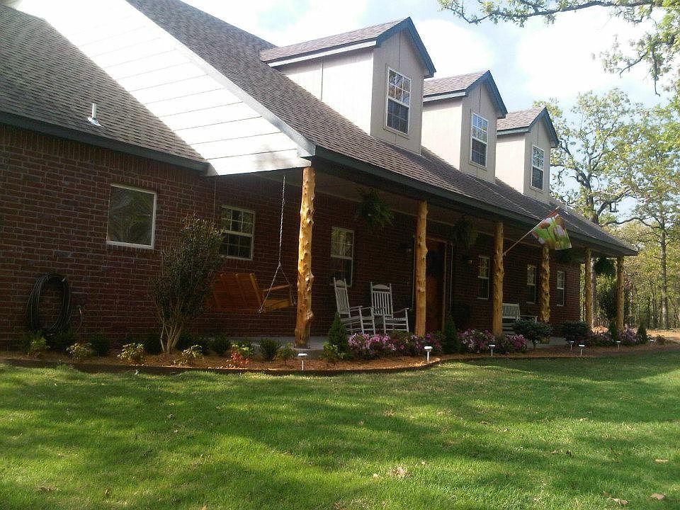 Want privacy? Beautiful custom built home on a hill w/ a secluded location & view of Bar Dew Lake from the backyard! Gorgeous custom rustic woodwork throughout. Private wooded location. Enormous living area with wet bar upstairs. Open floor plan & great for entertaining. Lg covered front porch, covered patio & deck area. 30x50 metal shop w/ concrete floor & electric. Nothing to do here but move in!