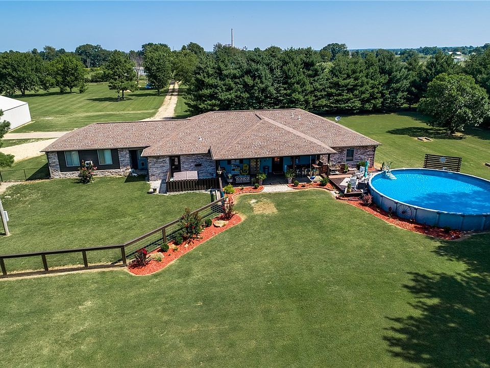 Ultimate entertainment - Large swimming pool, outdoor bar, built in griddle, horse shoe pit, TV, and speakers. Inside there is a home media room with a projector, built in speakers, a 110” retractable screen, 2 master suites, a built in 64 gun safe and a 8x8 shower! The shop has 2 horse stalls with plenty of room to park 6 vehicles. It has 3 overhead doors 2 at 12’ and one at 8’. Walking distance to the new Siloam Springs city lake/biking/hiking park! Gentry or Siloam schooling available. At the front of the property there is a concrete slab to place a camper/RV with septic and electric.