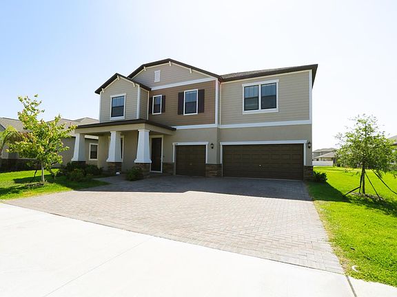 You Will Fall In Love With The Modern Design Of This Two Story Home! This GORGEOUS 3,890 sq ft like-new 2018 built 5br, 3bath, 3 car garage, open loft with WATER VIEW is the home for you! The cook in the family will appreciate the large open kitchen; offering all Stainless Steel appliances, 42" Staggered Cabinets, ample counter space with GRANITE countertops, large eat-in area, CENTER ISLAND with BREAKFAST BAR, and the best part; a HUGE WALK-IN BUTLER'S PANTRY with matching granite counter tops & storage cabinets! A bedroom and full bathroom downstairs overlooks the COVERED SCREENED PORCH and view of the SERENE POND. Providing a quiet, private space for an office or guest. Upstairs you will find the oversized master suite and bath, complete with GARDEN TUB, GLASS ENCLOSED SHOWER, water closet, and DOUBLE SINK vanity with granite top. DID I MENTION THE ENORMOUS WALK-IN CLOSET ROOM; spanning the length of the entire bathroom with a separate door leading to the laundry rooms. WOW! Three remaining bedrooms and full bathroom with tub/shower and LARGE FLEX ROOM/LOFT completes the upstairs space. With Neutral colors throughout, Tile floors in all traffic areas, plush carpet in all bedrooms, soaring ceilings, crown molding, ceiling fans, recessed lighting, 8 ft interior doors, 15 Seer high-efficiency Cooling & heating system, brick pavers form driveway surrounded by well-manicured landscaping. Newest upscale community within South Fork offers Amenities that include: Pool, Basketball Court, Community Play Ground, and Dog Park. Conveniently located near St. Joseph's Hospital, great shopping and dining with easy access to I-75 and crosstown expressway taking you to MacDill AFB, downtown Tampa, St. Petersburg, and Tampa international Airport. THIS ALMOST NEW HOME WILL GO FAST. AVAILABLE FOR MOVE-IN JUNE 8th.arricorealty.com