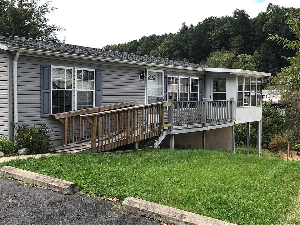 DO NOT MISS the opportunity to own this LAKEFRONT, Adult Living, in beautiful Blue Mountain Village. All on ONE LEVEL LIVING, this 2 bedroom 1 bathroom Residence is located on a 9 ACRE STOCKED LAKE. The house has been recently renovated and features new flooring throughout the house. You are sure to love the efficient propane heat and Central AC. Just check the view from the enclosed 3 season room and YOU WILL BE SOLD.