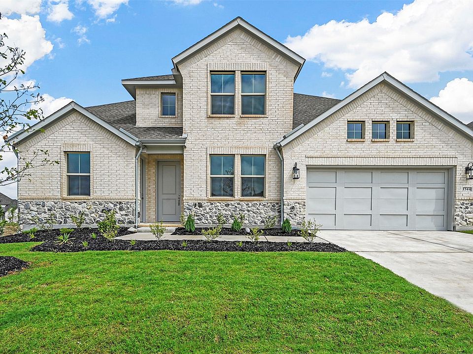 Welcome to this exquisite two-story home exemplifying luxury & functionality at its finest. You'll be captivated by the spaciousness and elegance of the Munich design. At the heart of the home is the expansive kitchen that is a true chef's delight, crafted with meticulous attention to detail, a waterfall edge island with quartz, and an abundance of cabinet space, ensuring both style & functionality. The convenience of modern living is highlighted by the thoughtfully designed main level, which showcases a magnificent primary bedroom suite & Extra Suite Plus, perfect for multigenerational living. A seamless blend of form & function continues upstairs with a spacious loft and two additional bedrooms. As you step outside, you'll discover a covered patio that beckons you to unwind & enjoy the outdoors in comfort.