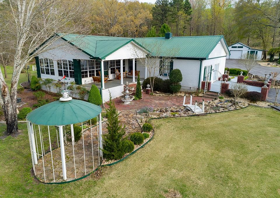 Uniquely beautiful 4 Bedroom, 3 full bathroom home sitting on 12.7 acres!This amazing home has so many features from the rustic cedar walls and trey ceilings in the the living room to the gorgeous wood floors.The eat-kitchen features an ample amount of cabinets, a pantry, appliances, and more!This property fully runs on solar panels!Enjoy the amazing view from the covered front porch!Entertain guest under the covered patio that includes an outdoor kitchen!Outdoors also features a pond that includes catfish, goldfish, & coy fish, Blueberry bushes, peach, pear, fig, & apple trees, wildlife, a storm shelter, and gazebo! 36x24 2 car detached garage, 60x30 tractor shed, & 24x24 detached building!