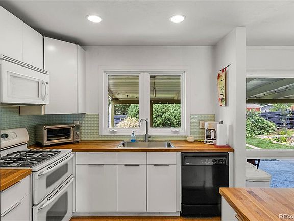 Character abounds in this bright and sunny, updated mid-century modern rancher with an open floor plan on a quiet street. Has A/C, water feature in the front and goldfish pond in the back, many newer oversized windows, large Family Room with beautiful built-in shelving, modern kitchen w/gas range featuring a large breakfast bar, butcher block counters and cork flooring, oversized 1 car garage, thoughtfully landscaped fenced-in lot, two storage sheds, chicken coop off of the garage and a sprinkler system. Hardwood floors, newer furnace, extra insulation in attic and crawlspace, raised garden beds and amazing landscaping complete this timeless gem. Come enjoy the peaceful views in this move-in-ready mid-century modern Rancher!!!