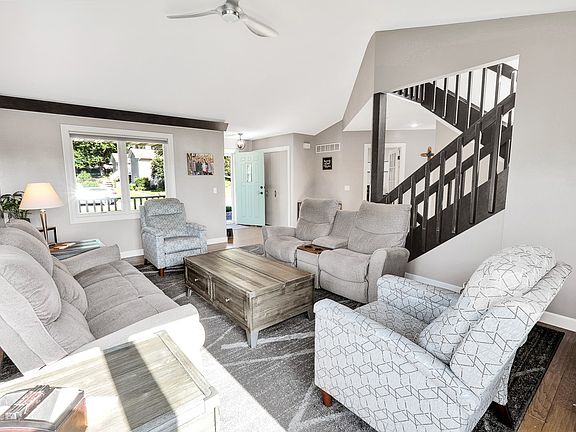 -- has 2 bedrooms with a shared full bath and the nice sized master suite with a roomy bath that has double sinks, tiled and stone spa like walk-in shower with dual heads and walk-in closet and newer LVP flooring. Don't forget the lower level a walkout basement with family room, bath, extra flex space and full garage sized storage room with a suspended concrete ceiling ( a great storm room also). Outside large deck on the back has been redone recently and has stairs to the lawn, extra concrete added in front for additional parking space and lots more. Don't take my word . . .call for a showing today!
