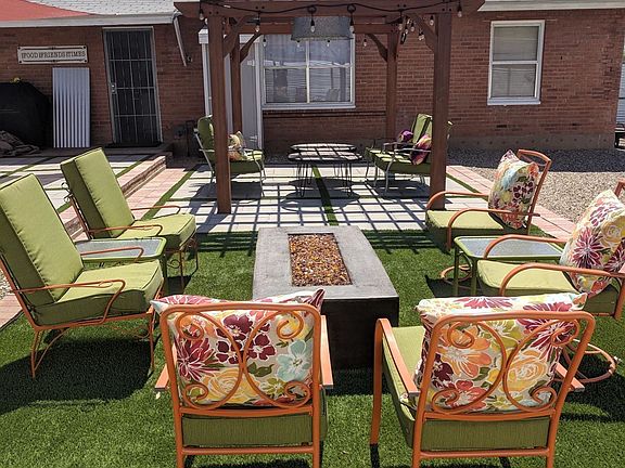 Beautiful centrally located 2 bedroom, 1 bathroom brick bungalow. Recently remodeled featuring all new kitchen cabinets and appliances, quartz counter tops, and laminate wood flooring throughout. The second bedroom features a built-in Murphy bed, perfect for guests, but keeping the room available to also accommodate an office or workout space. Lots of custom details including a brick wall with built-in shelving in the entry, accent beams in the great room, a custom dining room lighting fixture, and a barn door in the master bedroom. The exterior is gorgeous as well on this quarter acre lot which features low maintenance artificial grass, a drip system, and desert landscaping, back patio, a pergola for shade, a built-in gas fire pit, and mountain views. New privacy fencing, an RV gate, and