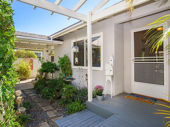 Lovely single story 3 bedroom 2 bath home is fenced all around and surrounded by overflowing landscaping. The large windows in this home brings in natural light and provide views of foliage in front, side and rear yard. Newer A/C and heating, dual pane windows, front and rear decks, sewer line to the street are a few of the improvements in this well maintained home of 20 years! Floor plan circles from the front entry to the den/family room, kitchen, dining area, the living room then back to front entry. Down the hall are three spacious bedrooms and two full baths. One bath is attached to the front bedroom. The two other bedrooms share second bath with separate entry alcove. Alcove has tagre but could be seated vanity. Linen closets in alcove, bathroom and hall. Living room with fireplace looks out to deck and backyard. Go out the sliding glass doors to lovely back deck covered with a trellis of Wisteria. Step down to enter the separate rear building with large windows and plenty of light for variety of uses. Art Studio, Exercise room, Workshop... Then out to the right to relax in your private, low maintenance backyard retreat.