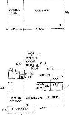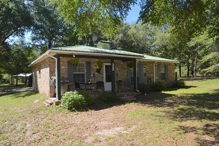 Over 5 ACRES and ALL Brick HOME! Plus a Workshop! 1 YR Home Warranty and Closing Cost assistance. Private Hedge lines the front of property and driveway. Acreage has plenty of wooded areas along with some cleared portions. Fenced area is perfect for those outdoor animals and the zoning is AGRICULTURE! What more could you want? TWO Master Suites! Over 1,200 sq.ft. w/ceramic tile throughout and carpet in two bedrooms. 3rd bedroom is currently being used as an office/den w/door to the back yard. Utility room is located off the Kitchen w/door to the side yard; Make it a MUD room! Energy-efficient with R-38 in attic, R-19 in walls, 15 Seer heat pump, attic fan, and wood-burning heater can heat up the whole house on those chilly nights! CHICAGO BRICK,Storm Doors,Front Porch,Metal Roof,Gutters...