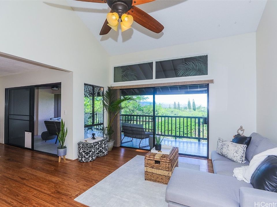 3 bedroom, 2 + half bath split level townhouse with 2 car garage located in the quiet and secluded Bluestone Golf Course community. Property was extensively remodeled in 2017 featuring Antique eucalyptus hardwood flooring throughout the home, Granite Countertops, Custom quartz in Primary Bath, unique skylights allow for more natural light and cross ventilation. Beautiful custom etched glass panels in the staircase. The Kitchen opens up to the living and dining area which flow nicely to the covered lanai areas for additional entertaining and peaceful enjoyment overlooking the lush landscaping. You enter the gated community from Kamahele Street, which offers a quiet setting and privacy. Amenities include BBQ, pool, jacuzzi, tennis court, rec room, resident manager and security guard. Pet policy: limit 2. **Open House: Sun, Nov 17 from 2-5pm**