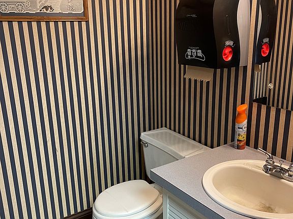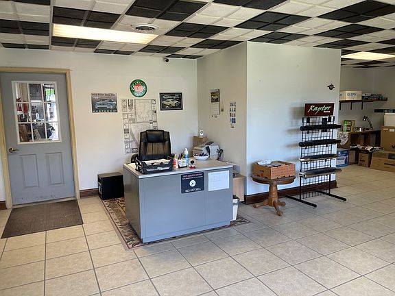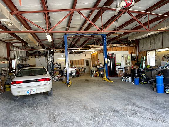This 3200 square foot metal commercial building has 2 oversized garage doors, concrete floors, and an extra property lot for off-street parking. Features a large open ceramic tiled lobby or showroom, bathroom and additional offices. The vehicle lift and 80lb air compressor are included. Equipped with 2 bathrooms, this property could easily be 2 business as well. Centrally located for many possibilities!