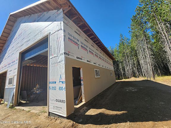 5 acres in a paved community not to far from town. Boarding 2 sides of state land approx 1280 acres. 48x48 shop plus 16' lean to on the right still being built, with 200 amp power service, water 40 gpm, and septic installed, owned 500 gallon propane tank. bring a builder and build on the foundation that is installed or build off what is provided.