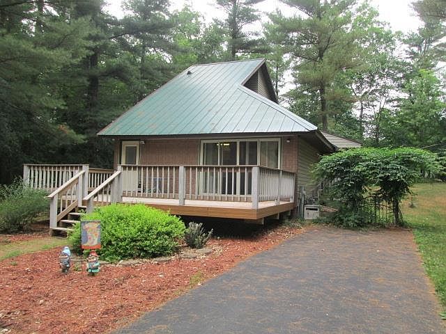 You say you are looking for something a bit different? Here you go! Unique style home gives you choice of full time living or vacation home. Features include great room that includes living area, kitchen and dining all in one, main floor bed and bath and a nice family room looking out to the back yard. Upper level features a bedroom, bath, small sleeping area and the loft your kids will love. Partial basement with walk out thru Bilco Doors. Home has large front deck, blacktop driveway and nice garage. 2 Car garage door but split by posts inside allowing for 1 car on one side and storage on the other. Beautiful 1.48 acre lot located just outside of town on a quiet back road with very little traffic. Walk to the Friendship Lake! Many Golf Options within 20 minutes. Call Now!