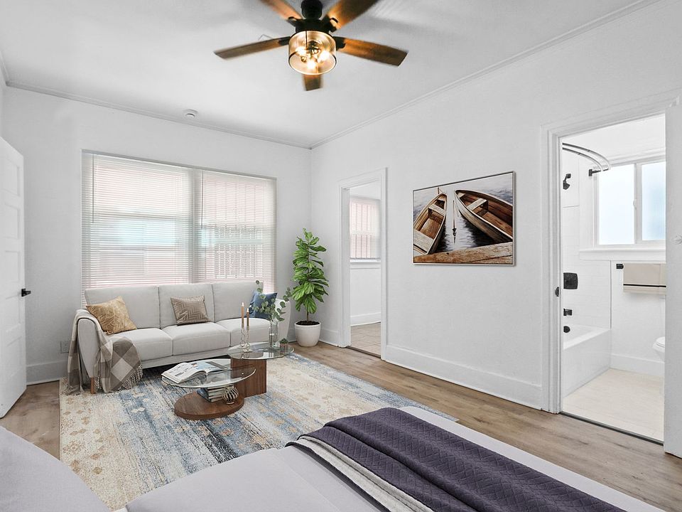 This bright and airy unit features new flooring, fresh paint, and large windows that fill the space with natural light. The modern kitchen includes sleek white cabinetry, quartz countertops, and stainless-steel appliances. Enjoy a stylish bathroom with updated finishes and a spacious layout that feels open and inviting. Gated entry, on-site laundry, and a prime location near DTLA, Koreatown, and USC make this the perfect urban retreat!