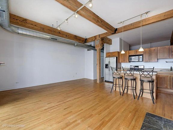 Impeccable 1 bedroom/1 bath loft with one heated parking spot included. Situated in the popular West Loop neighborhood and walking distance to the top-rated restaurants, shopping and nightlife! This unit boasts soaring ceilings, hardwood floors, beautiful exposed brick and wood beams lending itself to the true Chicago loft feel. The updated kitchen includes a large island perfect for entertaining along with stainless steel appliances, and granite counters. The tastefully appointed kitchen is open to the expansive main living area with gas fireplace. Floor to ceiling windows allow natural light to brighten the space and give way to your private balcony. The large bathroom includes whirlpool tub/shower combo and modern fixtures. Plenty of storage space and in-unit washer/dryer combo for your convenience.