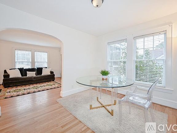 Charming 3 bedroom, 2 bathroom bungalow in Jefferson Park neighborhood in East Point, GA. Within walking distance to local schools. The streets are lined with sidewalks and you are just a moment away from downtown East Point where you can enjoy the farmers market, restaurants, shops, community events and the Beltline. This renovated 4-sided brick home has kept its original character and charm throughout. Fresh paint inside and out. Hardwood floors throughout. Two screened in porches with one overlooking the spacious backyard. The living room is spacious and leads to the separate dining room but still feels like an open concept floor plan if you are entertaining. The kitchen has granite countertops, tile backsplash and floating shelves on one side of the wall. On the main level you have your laundry, 2 bedrooms and a full bathroom. Upstairs you will find another bedroom that opens to a sitting area/walk in closet and another full bath with an oversized walk in shower. Plenty of driveway parking, parking pad and off street parking. Amenities available: central air, central heat, dishwasher, hardwood floors, updated kitchen, updated bathrooms, washer dryer, yard, and side and back screened porches. No utilities included. House comes unfurnished and is pet friendly for small dogs and cats; non-refundable $250 pet fee (per pet) required. Date available: March 15, 2025 (not available to show until after March 5). $2,100/month rent. $2,100 security deposit required. No utilities included. House comes unfurnished and is pet friendly for small dogs and cats; non-refundable $250 pet fee (per pet) required. Available March 15. One-year lease term. Late rent payment fee of $150. $2,100/month rent. $2,100 security deposit required upon signing of lease.