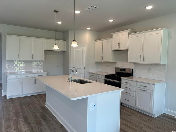 This home can be ready for August/Sept closing! Welcome to Crescent Cove! The only community just minutes from Market Commons with access to the Intracoastal Waterway! Quick move in home projected completion August/September! Hartwell floor plan that 1st level includes study, laundry room, powder room. Kitchen overlooks gathering room and dining area. Quartz kitchen with corner pantry, gas cooking, tile backsplash, soft close cabinets. LVP flooring throughout the main level! 1st floor Owner's Suite with double vanity and shower w/tile surround. 2nd floor includes a guest suite with full bath plus 2 more generously sized bedrooms and hall bath PLUS loft area! Enjoy the private back yard with a pond view while you are relaxing on the covered patio! Future amenities will include boat ramp, community day dock for residents, playground, resort like pool and pavilion and pickleball courts. Cable & internet included in HOA fee!