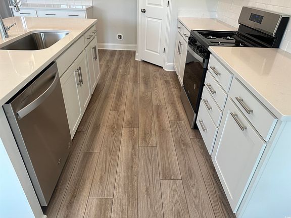 - Features: Kitchen Exhaust Fan, Kitchen Island, Pantry, Stainless Steel Appliances, Solid Surface Counters