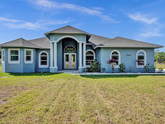 Get ready to be wowed by the ultimate modern living experience in this stunning, nearly new home with exceptional attention to detail! Situated on a sprawling 1.28-acre lot, this property has it all - space for your horses, RVs, or boats, and a total of 4 bedrooms plus an office/den, 3 bathrooms, and 3,353 sqft of living space including the large covered porch, patio, and 2-car garage. The thoughtfully designed floor plan is fully upgraded, with features like impact windows (many with sunburst arches for even more natural lighting), custom tile work in all wet areas, and high-end finishes throughout, Beautiful 10 inches Crown Molding in living areas, master bedroom and study, and thats not all! As soon as you step inside, you'll be greeted by custom, open extra-large and extensive family room with space for a pool table and a formal dining room, and a custom archway leading you to the chef's dream kitchen. This kitchen is sure to impress, featuring state-of-the-art Samsung slate appliances with a 5-year warranty, beautiful quartz counters, and soft-close wood cabinets.