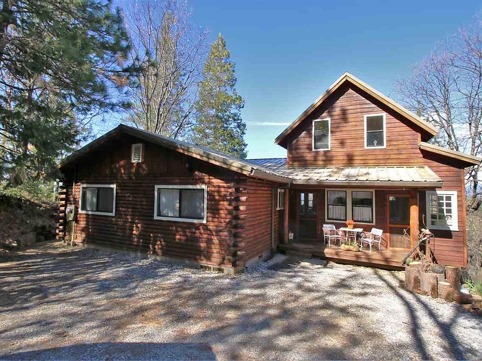 Set on a ridge top this house will provide wide open views enabling your eyes to wander over nature to enjoy the changing colors of sunrise and sunsets. To reach the home, you will drive past five county ditch waterfalls. Once you arrive, you will most likely not want to leave! Cathedral ceilings soar and windows welcome in the light into this spacious and open log cabin. Hand worked logs from the property showcase the stairwell to the master suite. Large open kitchen with new stainless appliances all face the windows to the deck and view. Second room downstairs could be the third bedroom but has not closet. Inside laundry room is off the kitchen. The light beckons with the glass door opening to the Juliet balcony at the top of the stairs. You can watch the sunsets or the stars as they come out to play. A dressing room suite opens into the master bathroom. There is another storage closet there for your winter bedding and clothing. Outside in the backyard, you have the deck for dining plus room in the side yards for relaxing or playtime and in addition you have a patio. A potting shed is another spot for you to design as more storage or a workshop. Hiking trails start near the property. This home is 15 minutes from Columbia State Park and 5 minutes further into downtown Sonora. Bo