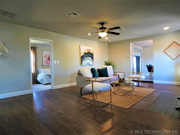 New Remodel cute and cozy mid-century home, on a nice big lot. Located in the desirable Bixby School district close to highways, shopping & amenities. Gorgeous flagstone patio welcomes you into the spacious living room with lots of original charm, Refinished hardwood floors & great wood-burning fireplace, New Kitchen cabinets, Updated bathroom and new interior/exterior paint, Big backyard deck & large yard. Plenty of space to build a shop or park a RV with hookups. Unique yard with access to front and back of property. Enjoy the Beautiful sunrise views on the front porch.